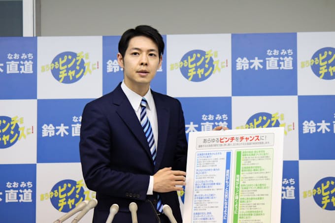 14日に38歳の誕生日を迎えた鈴木氏は約150本の政策からなる公約を発表した。目玉に据えるのが、北海道にゆかりのある経済人や文化人などでつくる、ほっかいどう応援団会議の結成だ。